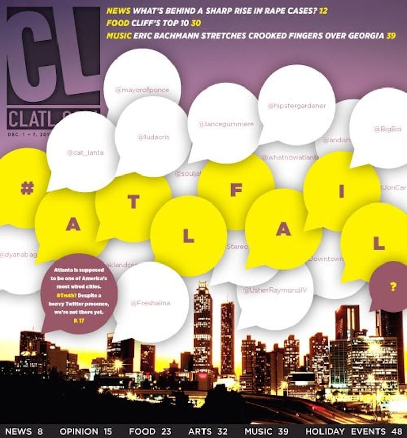 The newspaper questions whether or not “Twitter-friendly Atlanta” is actually one of America’s most wired cities, it its cover story.