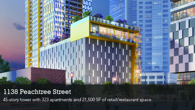 1138 Peachtree would be a 45-story tower with 323 apartments and 21,500 SF of retail and restaurant space.