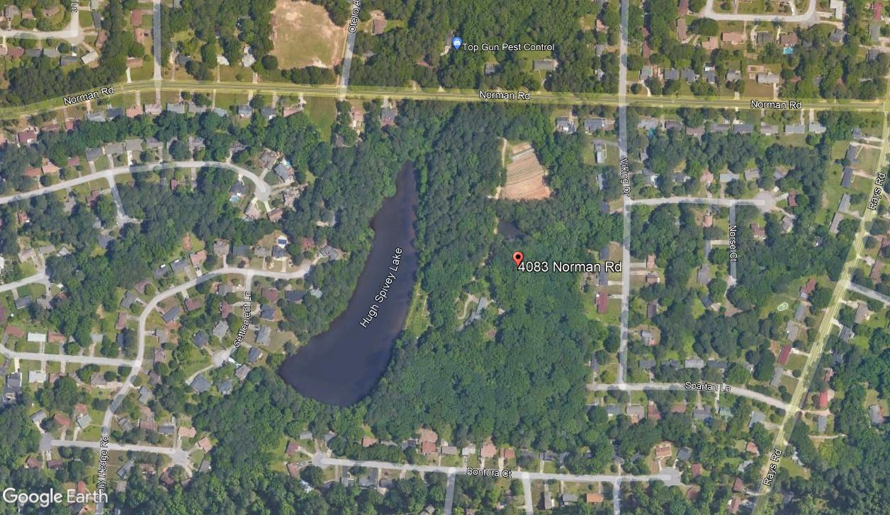 According to submitted application documents, the general site layout consists of a mixture of housing types, including single-family cottages, conventional single-family detached lots, urban single-family attached and detached units, and duplexes. There are a total of 120 housing units proposed which equates to a housing density of 3.5 units per acre. The proposed single-family detached cottages are clustered around courtyard pocket parks. All proposed uses have internal pedestrian sidewalks and walking trails to connect to Spivey Lake. In addition, there is a large community forest along the Norman Road property frontage along the northwestern portion of the site, which proposes to preserve the existing tree canopy, natural open space and provide an appropriate visual screen from surrounding properties.