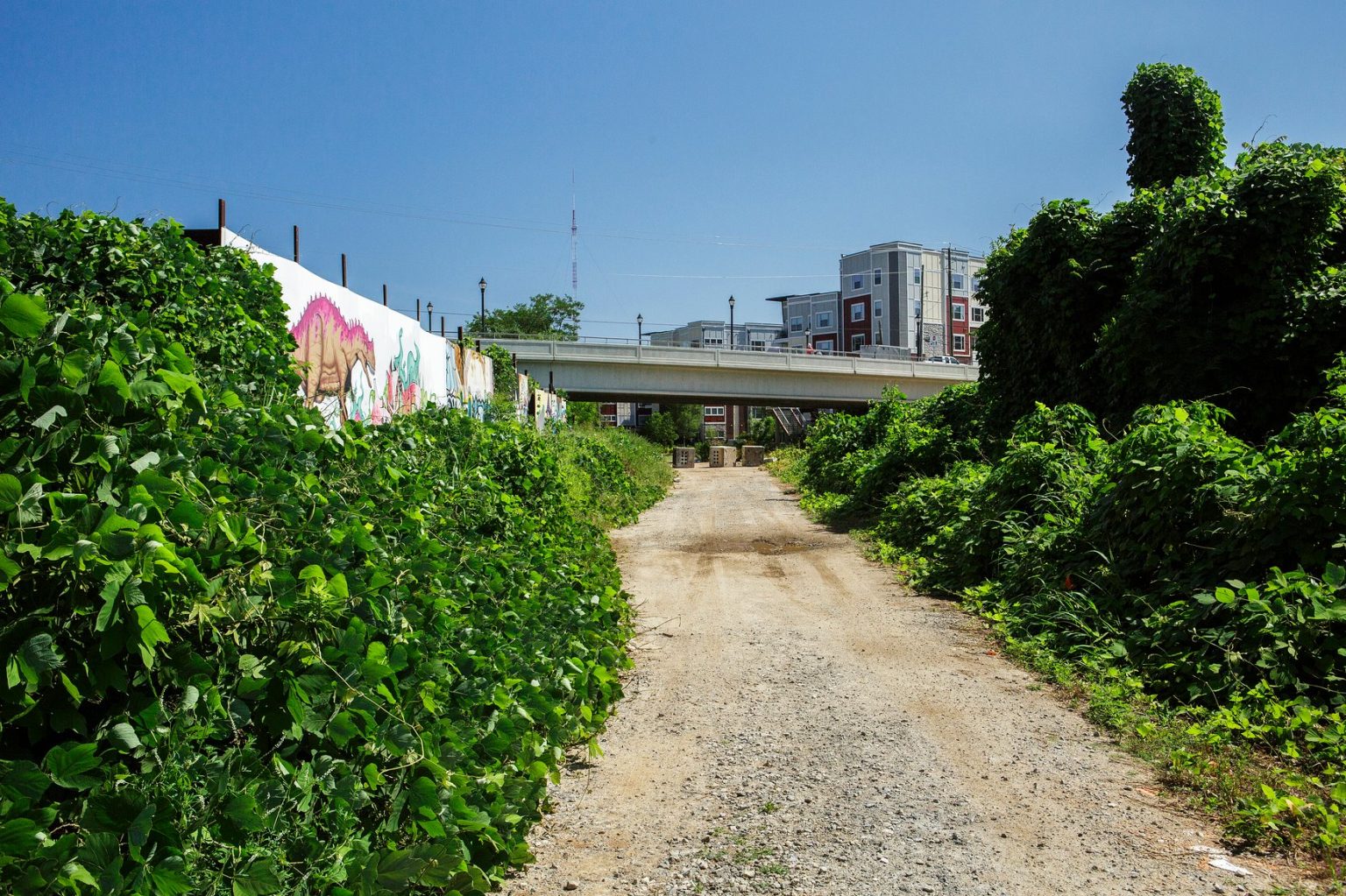 Termed “the wye” due to its Y-shape, this section of inactive rail crosses over the Buford Spring Connector and under I-85 before connecting with Mayson Street.