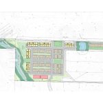 The site plan also includes details for street extensions, streetscape improvements, plaza construction, and potential connections to the BeltLine itself. Church Street would be extended across the site, curving toward Marietta Street parallel to the BeltLine. An access corridor to the BeltLine would connect to Church Street to the BeltLine beneath the proposed mix-use commercial building. Additionally, a new street would be created to the south of the data centers and extend across the development to provide public access to the BeltLine, and private access to the data center buildings and the existing buildings to the south. Two private north/south roads would traverse the development and would only be accessible to data center tenants, which would require a variation from the The Atlanta BeltLine Subarea 9 Street Framework Plan.