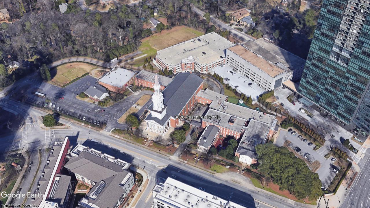 Earlier this year, Greenstone Properties, the Atlanta-based real-estate company, submitted plans and a request to rezone the 13-acre site located at 3626 Peachtree Rd. NE on behalf of Church at Wieuca, formally known as Wieuca Road Baptist Church. In June, as reported by What Now Atlanta, the original plan contained 450 multi-family units and a 512,000 square foot office tower.