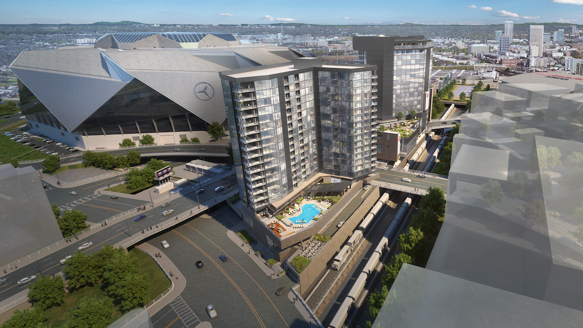 Anthem, a 292-key boutique hotel, as well as a 304-unit apartment tower across from Mercedes-Benz Stadium., broke ground Thursday.