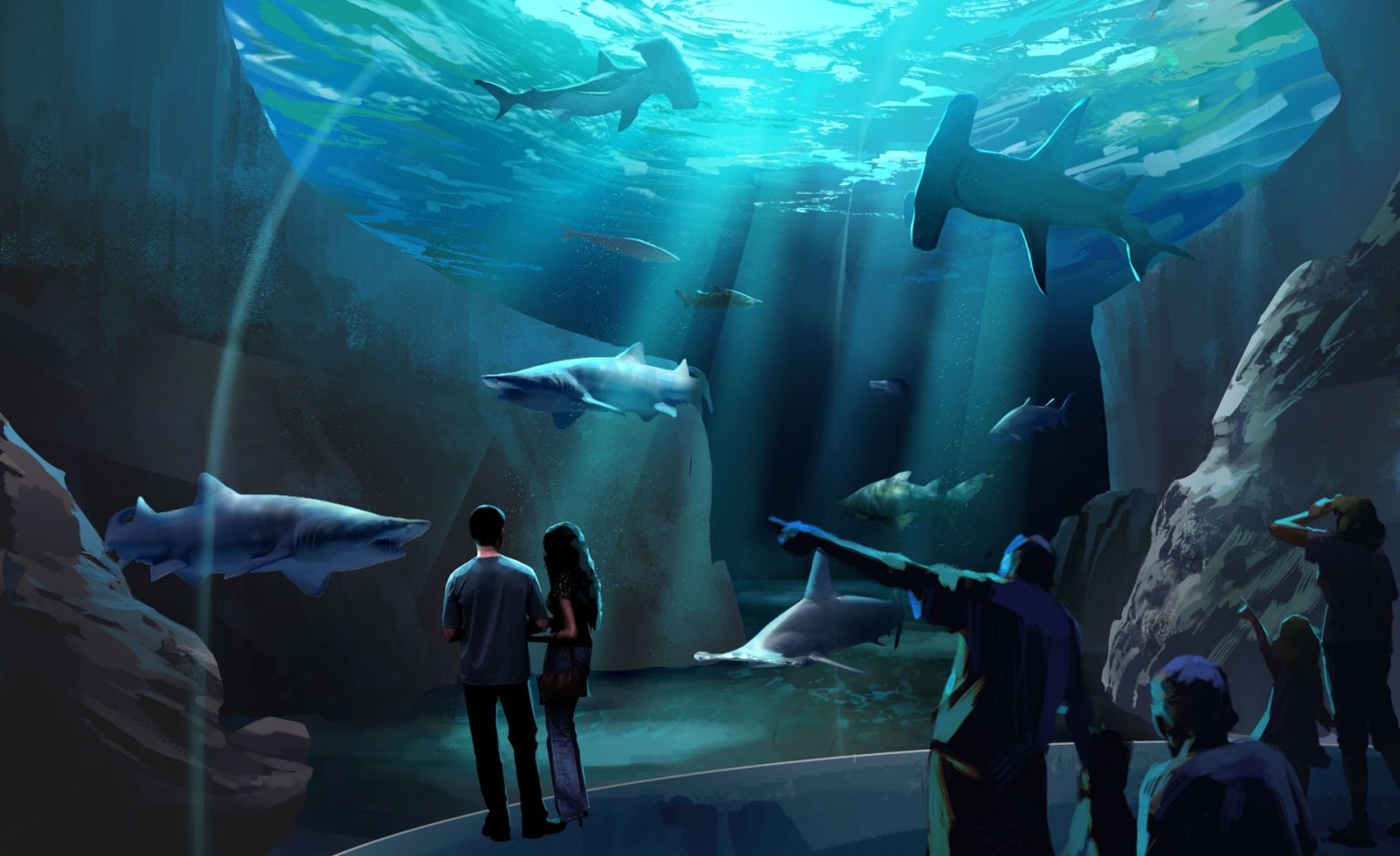 The saltwater gallery—a name for the gallery will be released closer to opening—will feature floor-to-ceiling acrylic windows to give guests an up-close and personal view of the sharks.