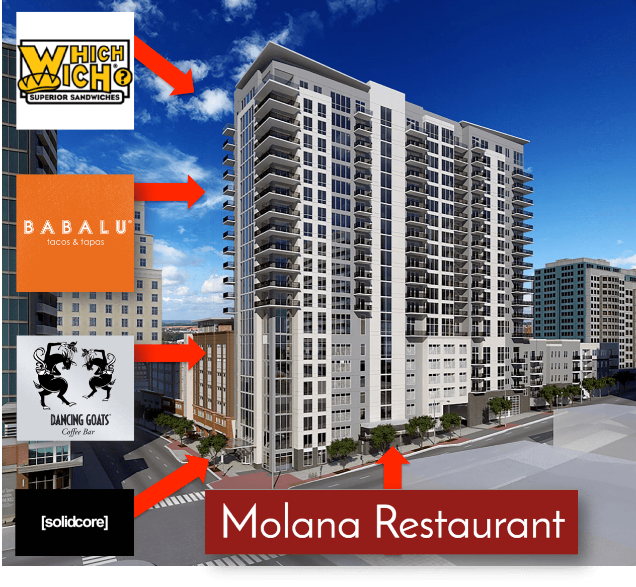 Babalu Tacos & Tapas, Dancing Goats, plus more, planned for the apartment high-rise.