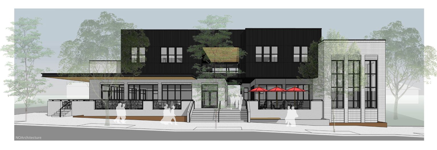 Plans call for a new two-story, 7,700-square foot building that will house two new restaurants and office loft space.