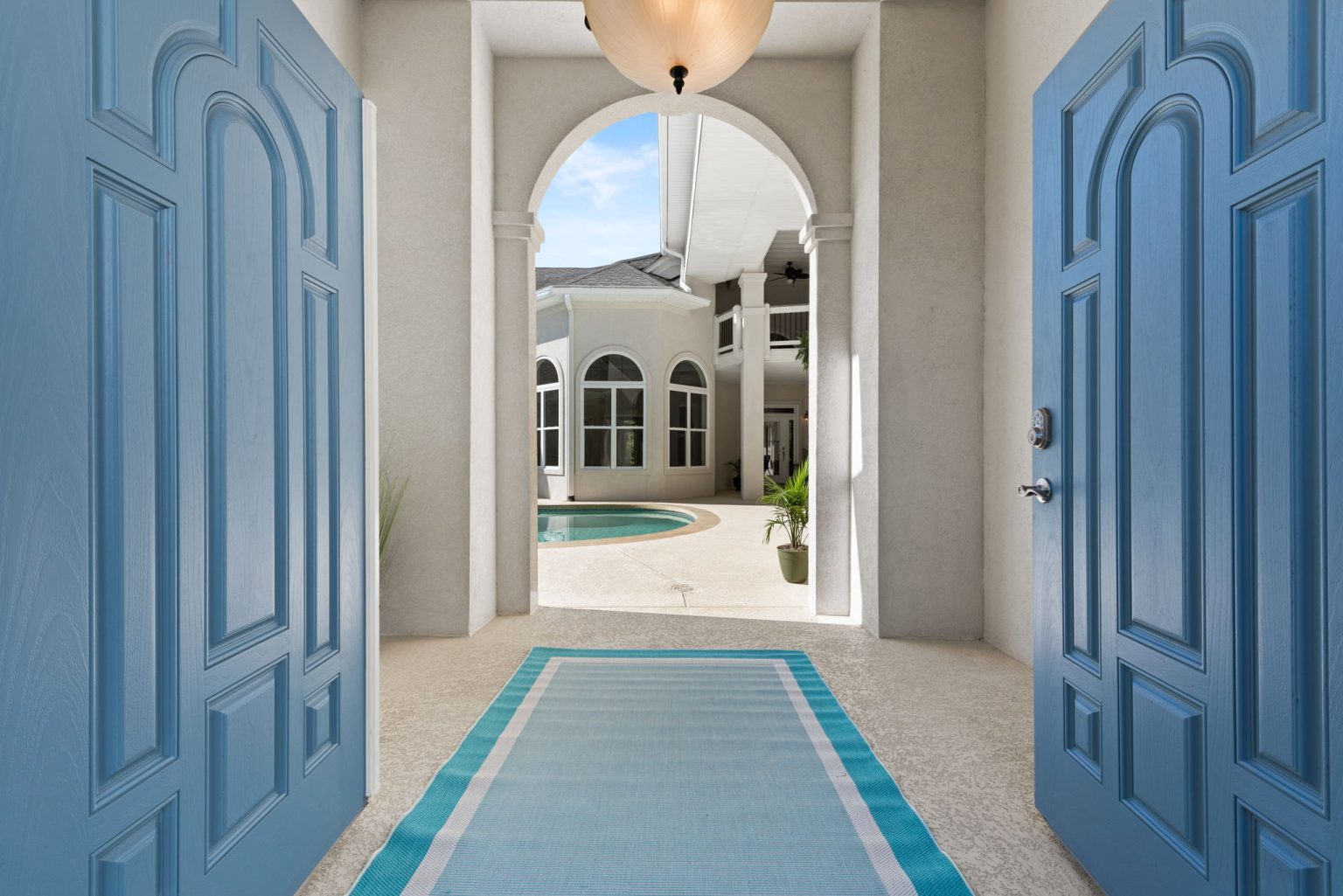 Step inside and be greeted by double doors leading into a covered portico and an exotic lanai. The amazing courtyard will leave you in awe with its heated lagoon-style pool, 8-person hot tub, weatherproof speakers, and elegant fireplace — perfect for outdoor entertaining.
