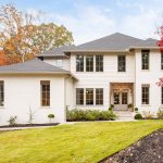 The formal dining room accommodates all gatherings, with a custom bar area and a wide view of the backyard. A private bedroom suite, mudroom, and powder room round out the main level.