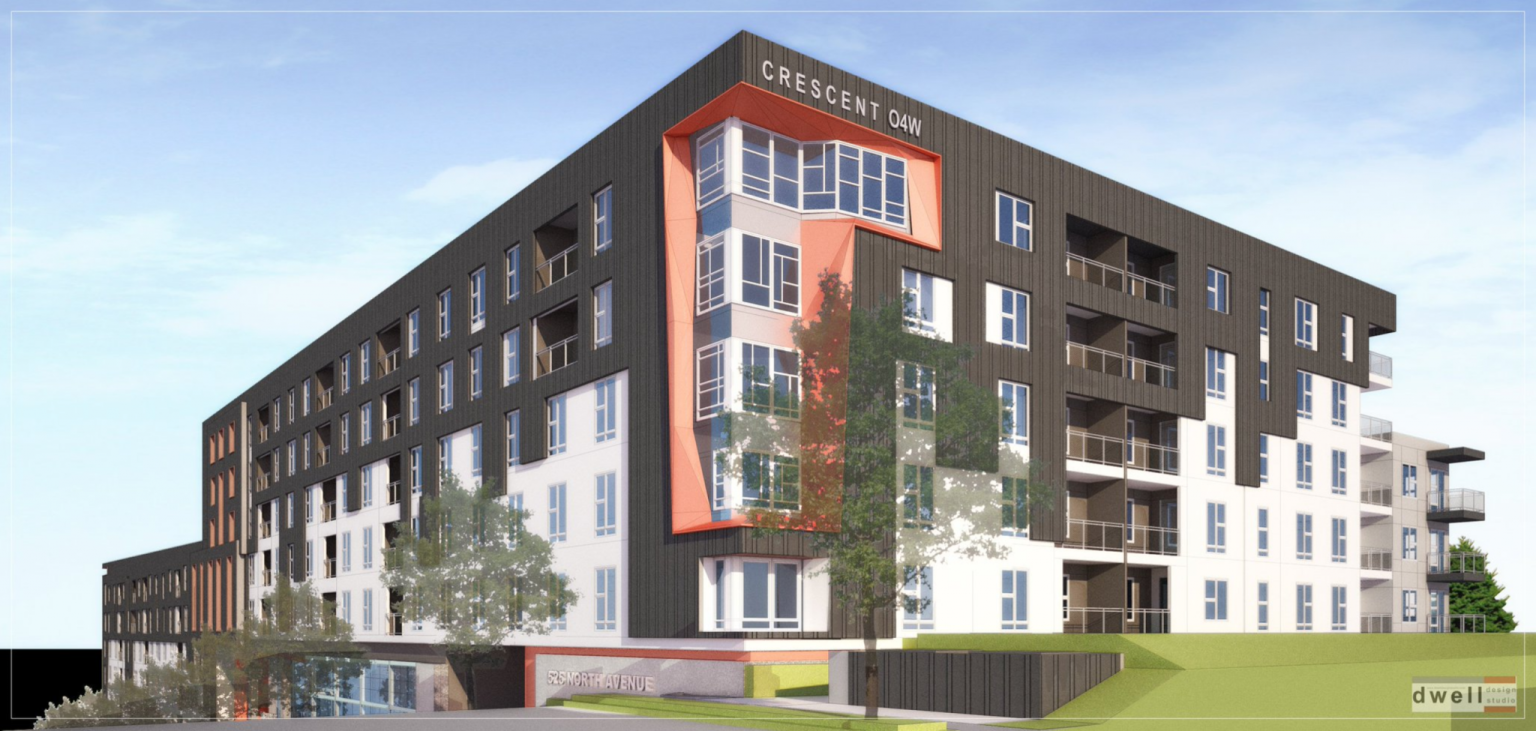 The project, at 525 North Avenue, includes a five-story residential apartment building with 240 units and 9,000 square feet of street-level commercial space.