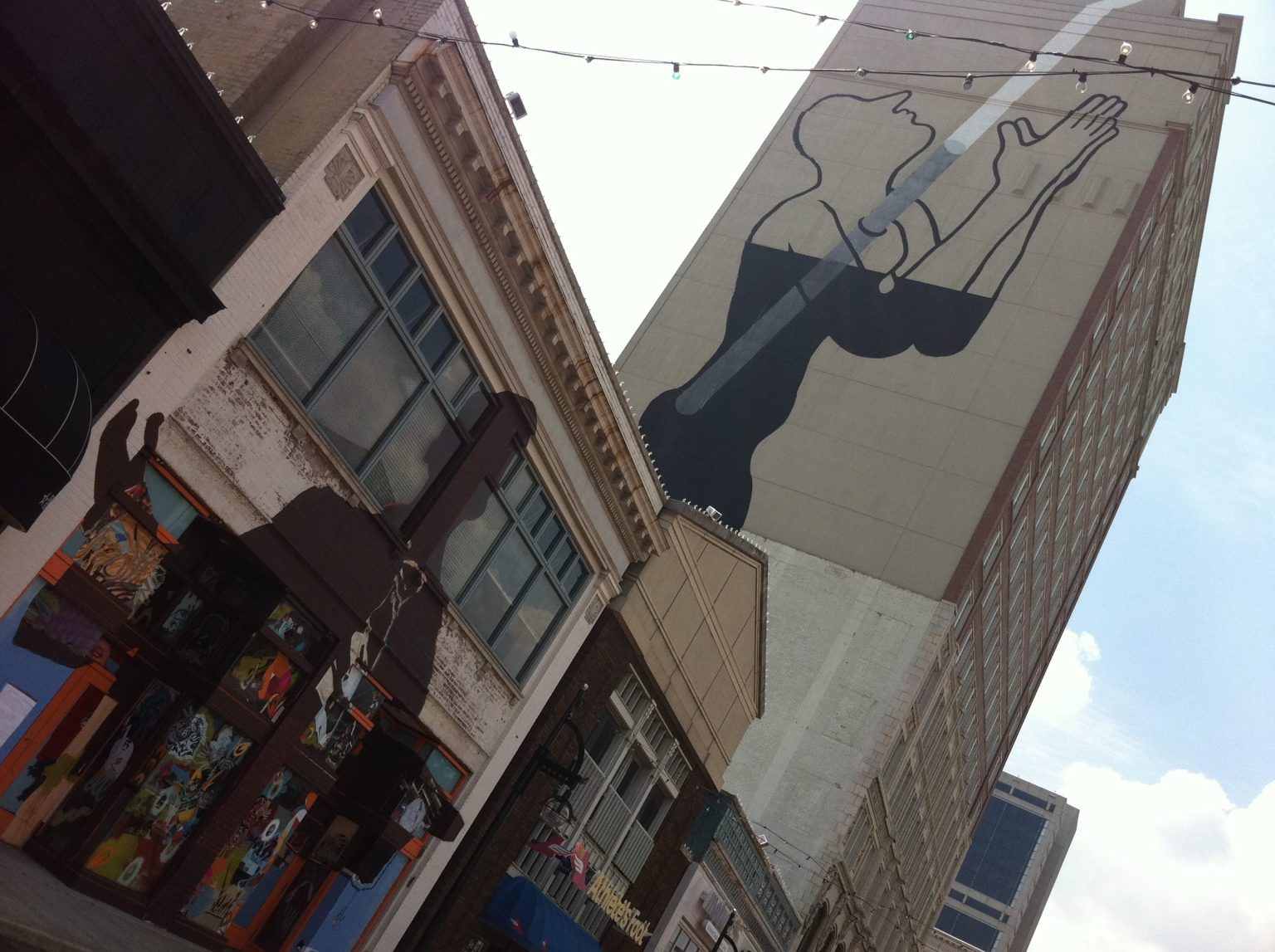 Painted by artists from Spain, the mural is one of several art works that recently appeared on scattered Downtown buildings as part of a 66-day, temporary art project sponsored by The City of Atlanta Office of Cultural Affairs Public Art Program called “Elevate: Art Above Underground.”