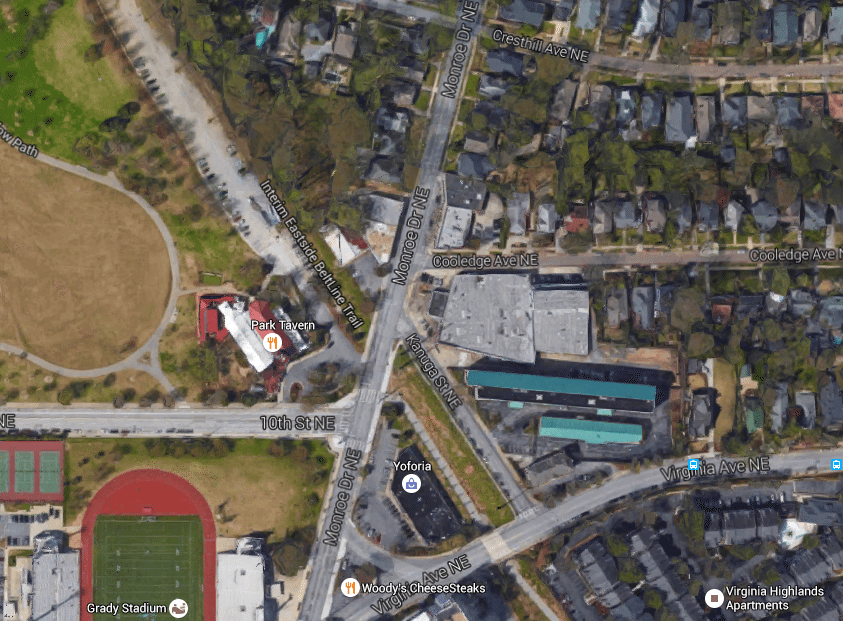 If Principal Jeff Fuqua has his way, the project would stand on four acres along Monroe Drive near 10th Street and next to Park Tavern, immediately neighboring Piedmont Park and the Beltline’s Eastside Trail.