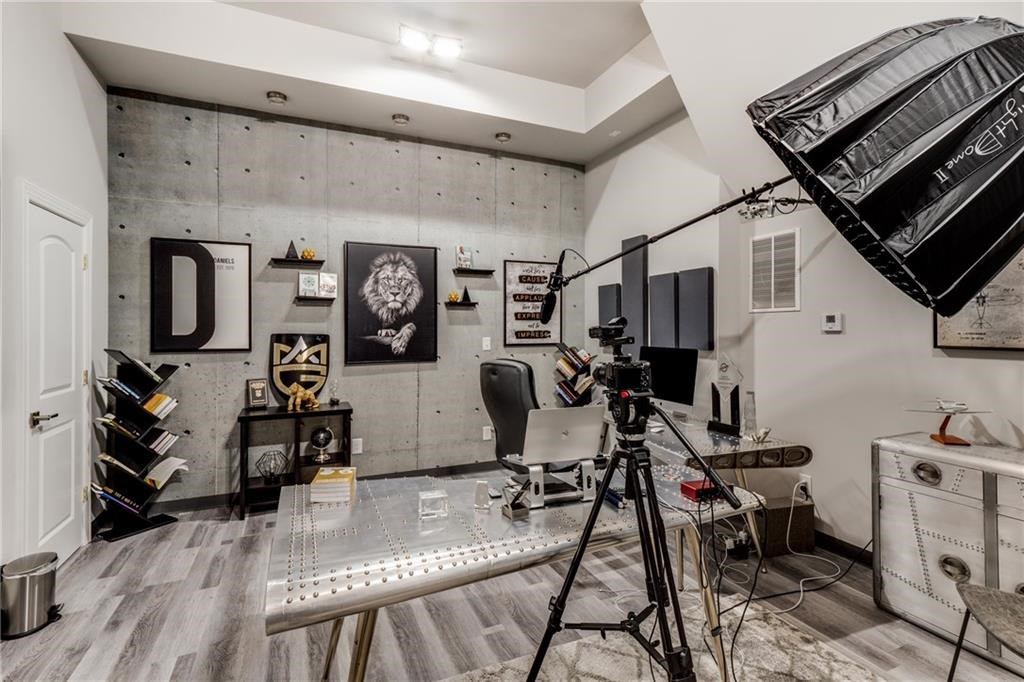 The highlight of the home is undoubtedly the newly built, state-of-the-art recording studio. Acoustically optimized and built to record professional-grade podcasts, videos, and more, this home studio allows you to do it all without ever leaving home. The adjacent control room and office space is perfect for editing, mixing, and mastering in a sound-isolated setting, and even rivals what you’d find at an actual recording facility.