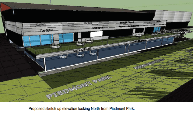 Although the forthcoming trail will not be immediately adjacent to the property, the renovation looks like it would be a lot more engaging to Piedmont Park and the future extension of the Eastside Trail than the current development would be.