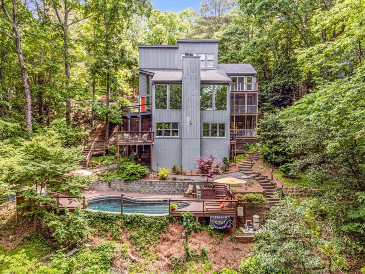Located in the prestigious Huntcliff neighborhood on a flat shoal alongside the Chattahoochee River, this beautiful, 4-bedroom contemporary home sits on a 1+ acre lot and offers incredible views of its lush scenery and riverfront access, all while having close, easy access to the city. Nearly a quarter-million dollars of both interior and exterior renovations have been made, including added skylights, new hardwood flooring, and even a heated saltwater pool.