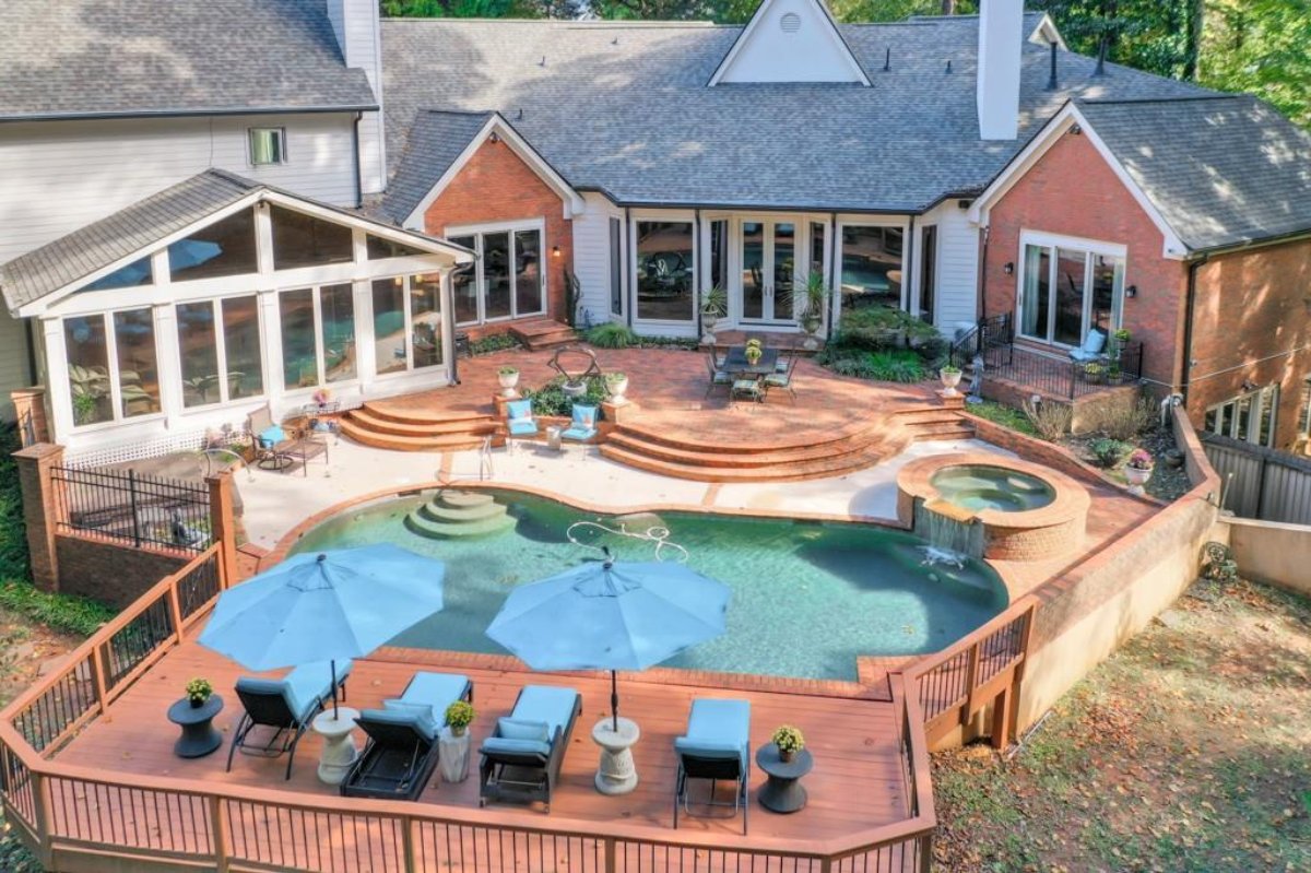 Tucked away on a quiet cul-de-sac in the coveted Atlanta Country Club, this stunning, on-the-market Marietta estate is the ideal location for hosting holiday parties and gatherings. With 5 bedrooms, 5 and 2 half baths, a sprawling open floor plan, and plenty of gathering room both indoors and out, this home is an absolute entertainer’s dream.