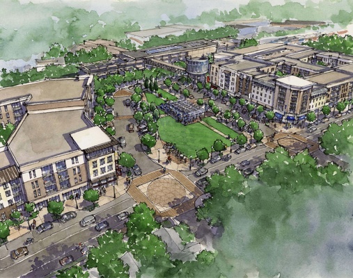 The first phase of the project will feature apartments, green space, and street-level retail.