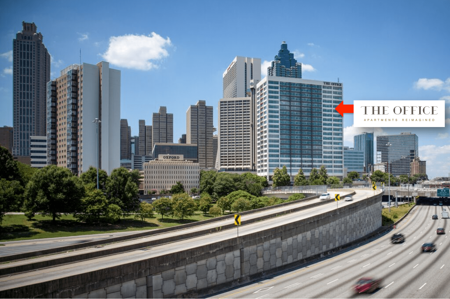 The high-rise, at 250 Piedmont Avenue NE, is a $55 million renovation project of a 20-story office tower into 327 apartments adjoined the Hilton Hotel, expected for a December completion (move-ins begin mid-September.)