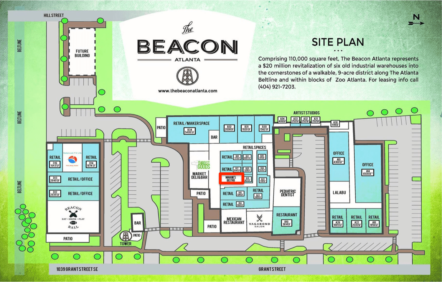 Other confirmed The Beacon Atlanta tenants include Balanced Fit Life, Vagabond Salon, Churchill Grounds, Third Street Market and Goods, and Grant Park Public House.