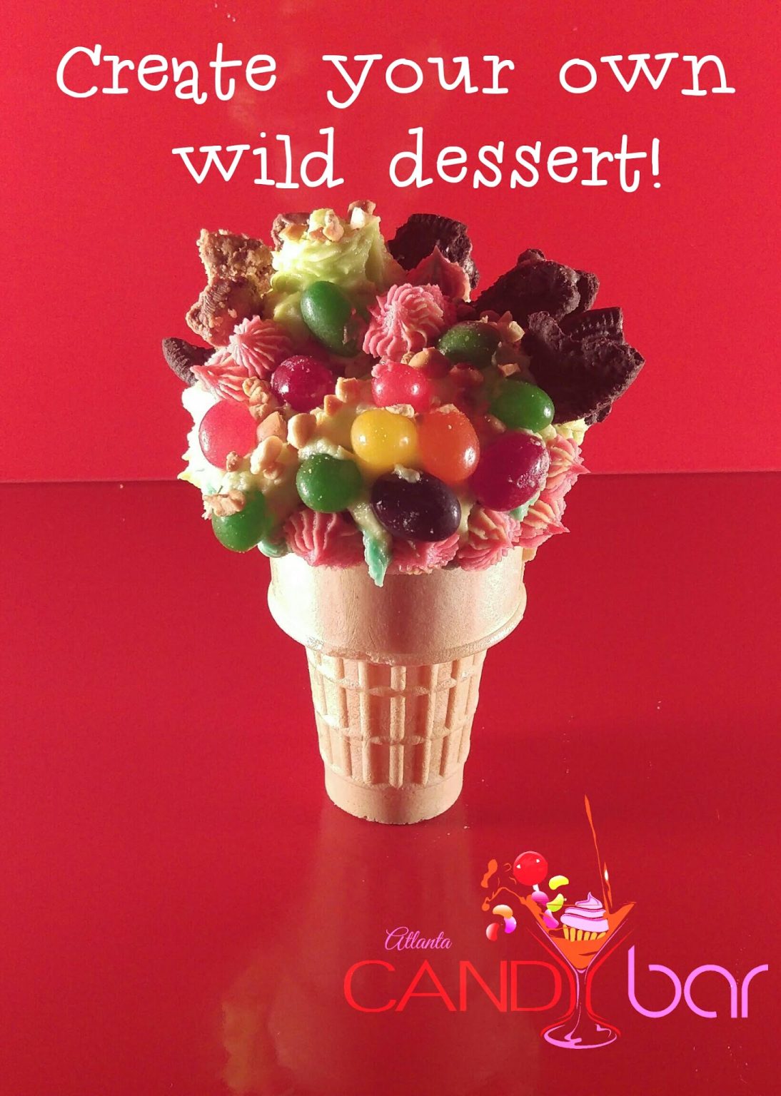 Atlanta Candy Bar will be serving up candy cubes (ice cubes with candy frozen inside), cupcakes, mini cupcakes, and cake pops, dessert kabobs, candy drinks, cake jars, ice cream, espresso shots, cupcake milkshakes, and a variety of chocolate and candy, with 24 topping options.