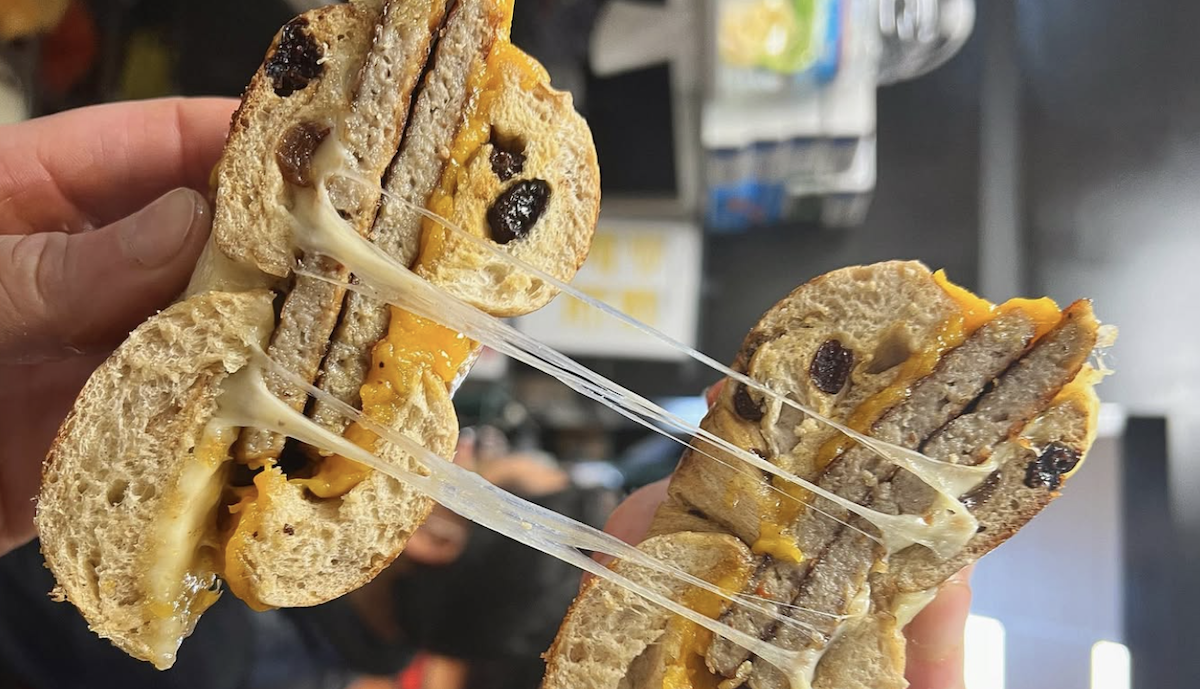 The menu features a variety of fresh bagels, including sesame, everything, onion, multigrain, asiago and jalapeño cheddar. They also serve flagels, gluten-free bagels and schmears.