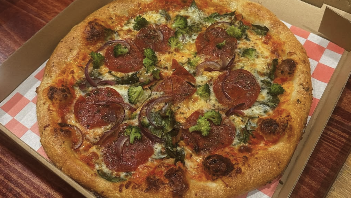 Customers can expect the new space to stay true to the menu and design of the current spot, offering the feel of a nostalgic pizzeria with nods to the owners’ personalities and backgrounds. The menu offers pizzas like the Matey (with marinara, mozzarella, jerk chicken, blue cheese and honey), Hot & Sweet (with marinara, mozzarella, plantain and jalapeño) and The Colliseum (with marinara, lemon-pepper impossible beef, broccoli, red onions and balsamic glaze).