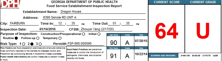 With out further ado, here’s a list of Fulton County restaurants that failed their health inspection in January– Bon appétit!