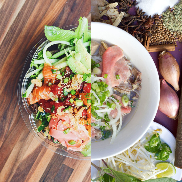 It's the sixth and fifth location for the poke and pho restaurants respectively.