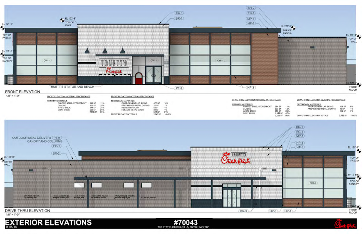 The new restaurant will stand at 6,900 square feet, and plans include a drive-thru that will accommodate 40 cars. Part of the restaurant will be devoted to informational displays documenting the evolution of Cathy’s Georgia diner to a nationwide franchise.