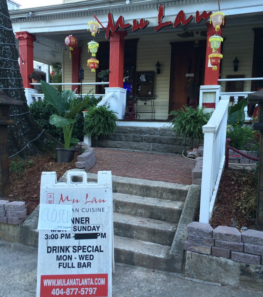 Atlantans who went to patronize MuLan Saturday found the Chinese restaurant dark.