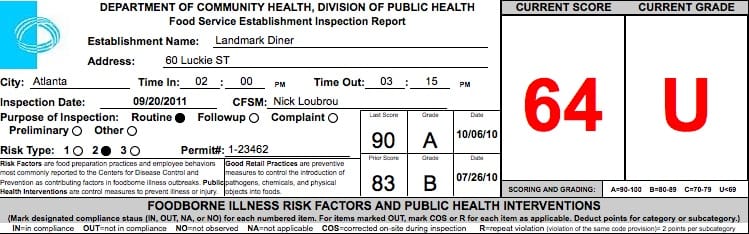 Landmark Diner | Failed restaurant health inspections | September, 2011 ~ what now atlanta