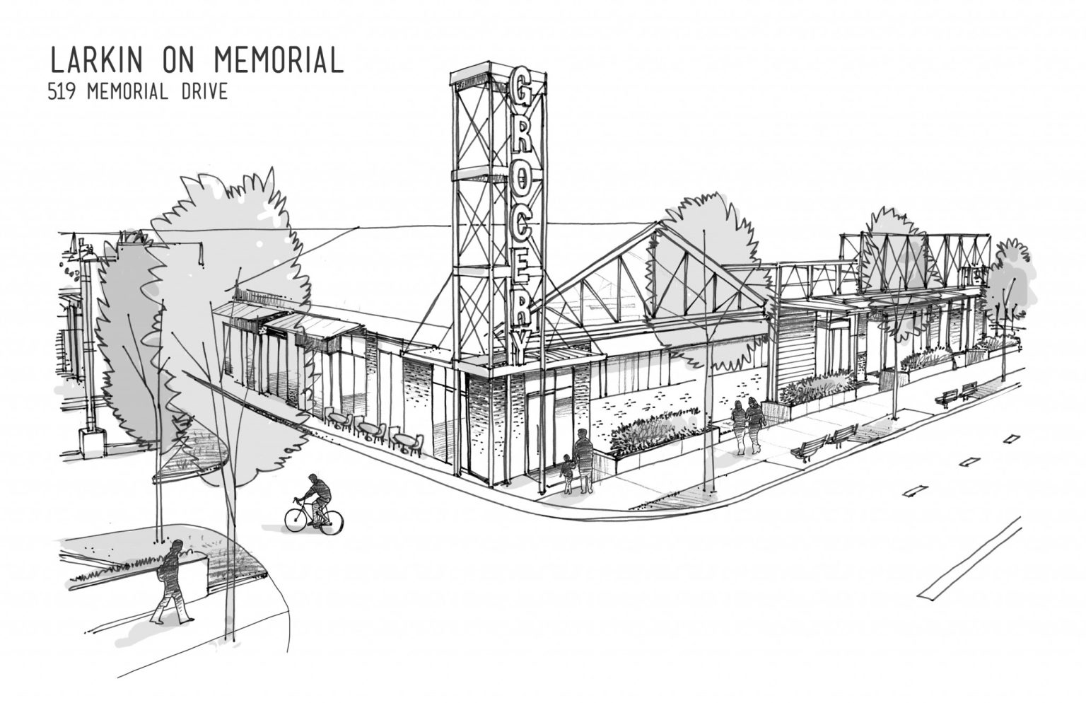 Sure to appeal to locals’ hopes of more community-oriented development, Larkin On Memorials first tenant is a grocery store.