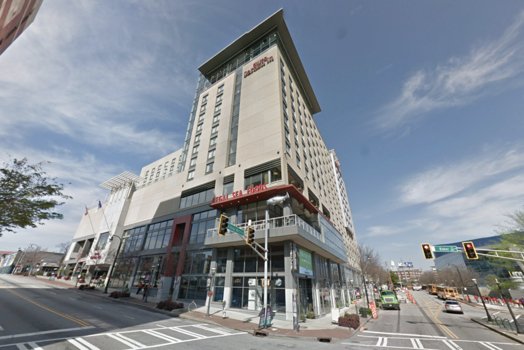 Legal Sea Foods has anchored the corner of Luckie Street and Park Avenue West, in the Hilton Garden Inn Atlanta Downtown hotel, since 2008.