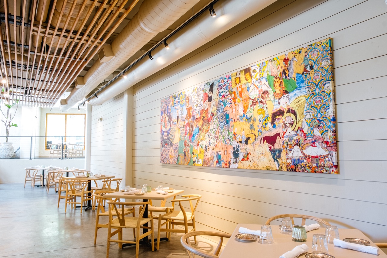 This goal translates to the location that Kargar is operating in. The walls and floors of the 2,800-square-foot space are a lighter, natural tone, and the chairs keep their natural wood grain patterns. “What we were going for is to represent the countryside of Iran,” Kargar said.