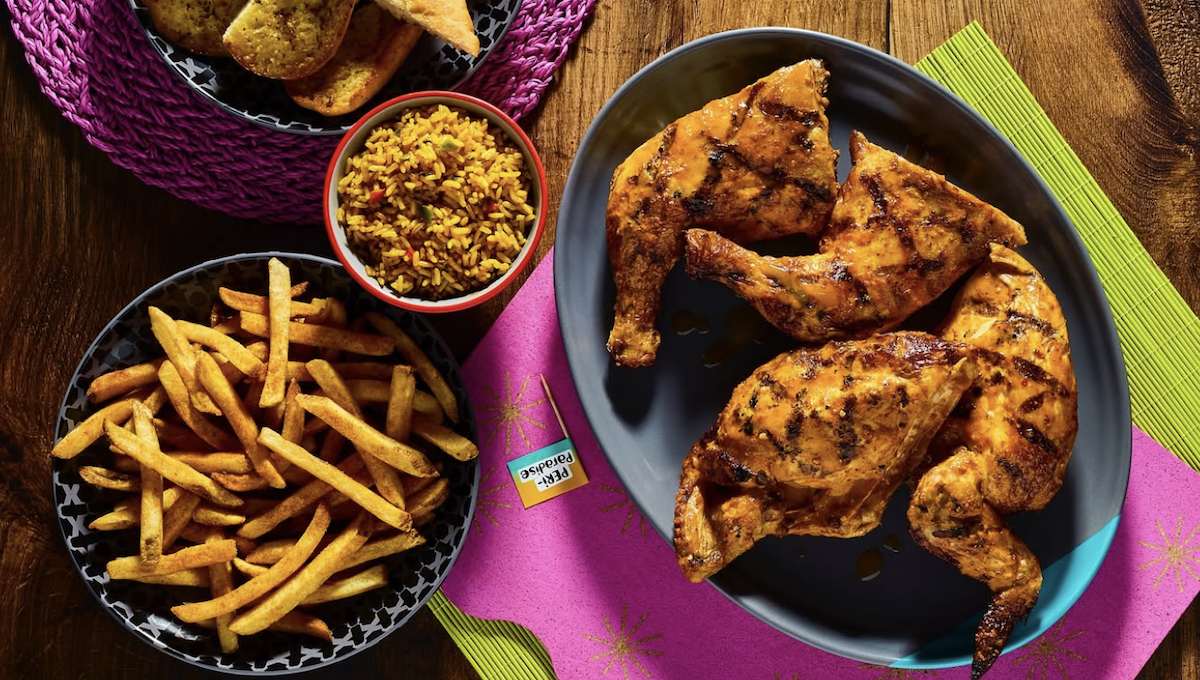 Nando’s PERi PERi got its start in South Africa in 1987. It now has more than 1,000 locations globally. The chicken chain serves “always fresh, never frozen” chicken that is marinated in PERi-PERi chili peppers for 24 hours and then is flame-grilled. Customers can choose from a variety of heat levels. Menu items include chicken pieces, chicken sandwiches, bowls, cocktails and beer.