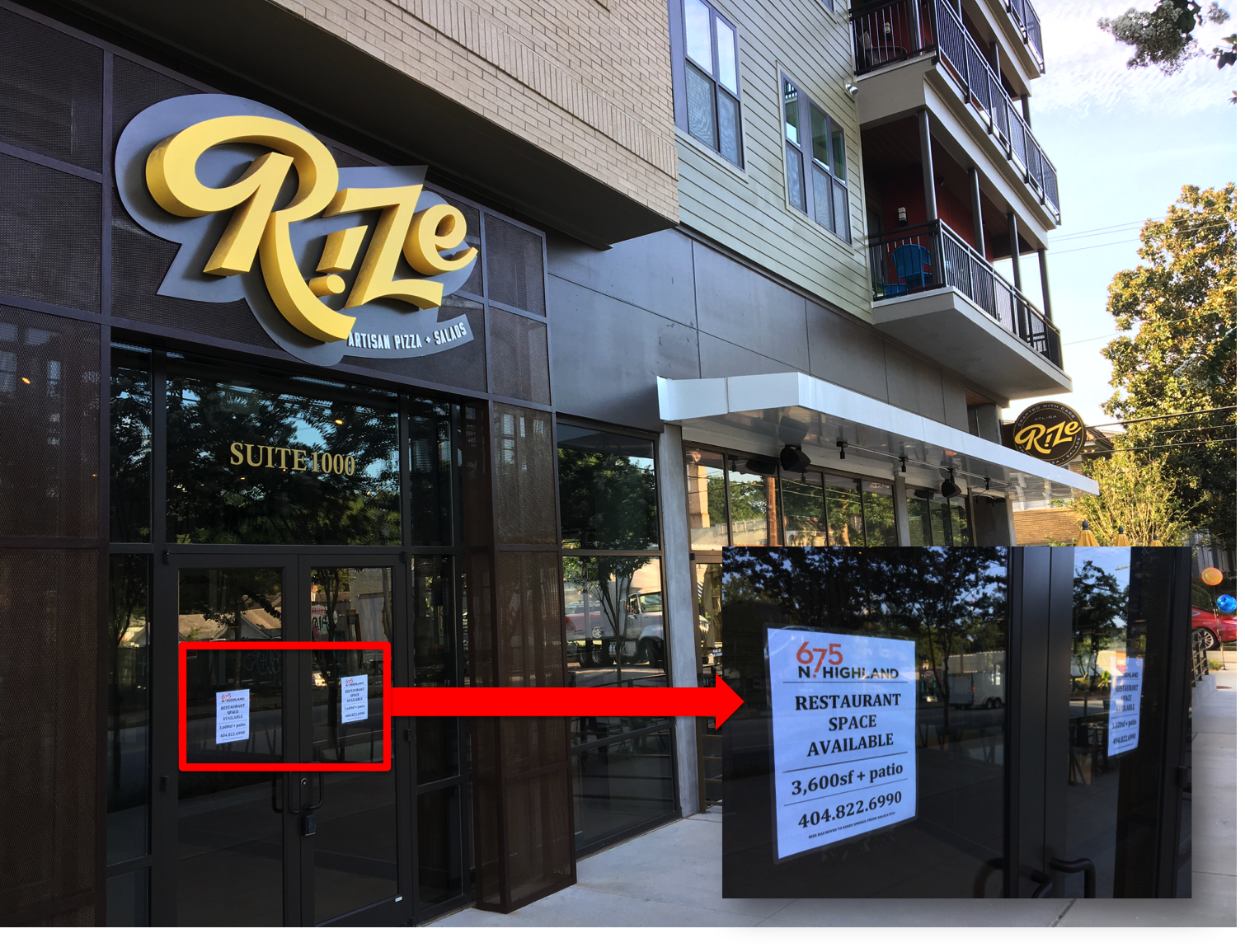 675 N. Highland, the apartment complex where Rize was situated, is wasting no time re-marketing the 3,600-square-foot space.