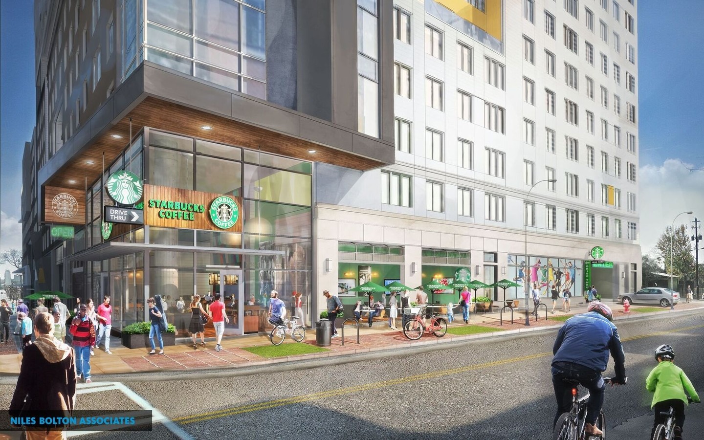 Resurrected coffee shop will return with its drive-thru in the 19-story student housing tower.