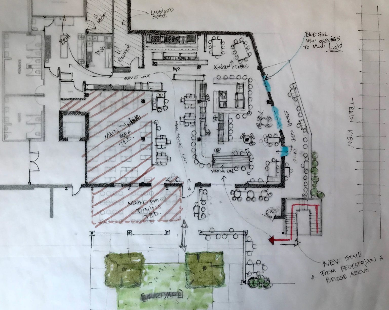Most of the space will remain untouched in the way of major construction but Patrick and his team will add windows in view of the nearby train tracks where a long bar will be situated.