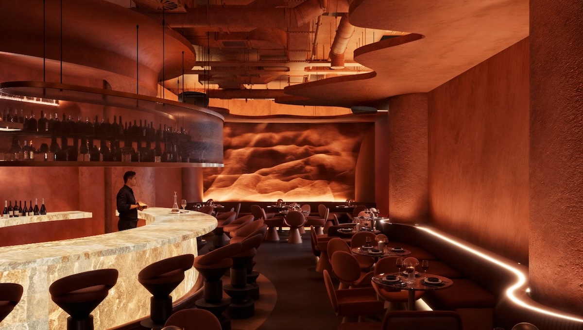 The atmosphere will feature a slot-canyon style entryway with The Commodore barber shop peeking through. There will be a one-way mirror allowing La Cueva customers to look into The Commodore. Within La Cueva, there will be a small stage for live music, a glowing onyx bar and a dark, moody atmosphere. Hopper describes it as elevated and classy, with a more upbeat nighttime scene following dinner service.