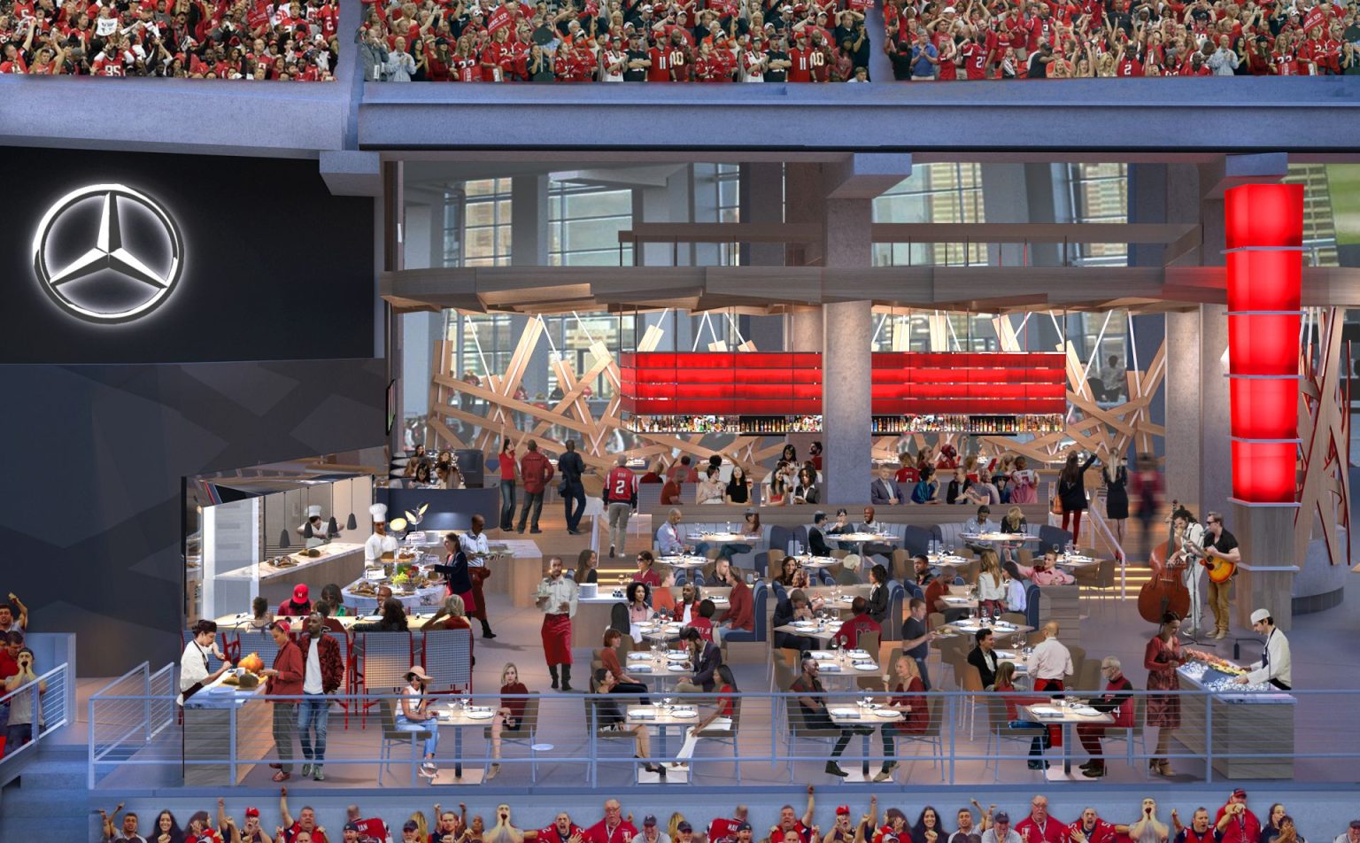 “It’s not very often you get the opportunity to create a full-service, destination restaurant and private club within a football stadium, especially a new NFL stadium. It’s an exciting first for us,” Bob Amick, owner and founder of Concentrics Restaurants, said in the announcement.