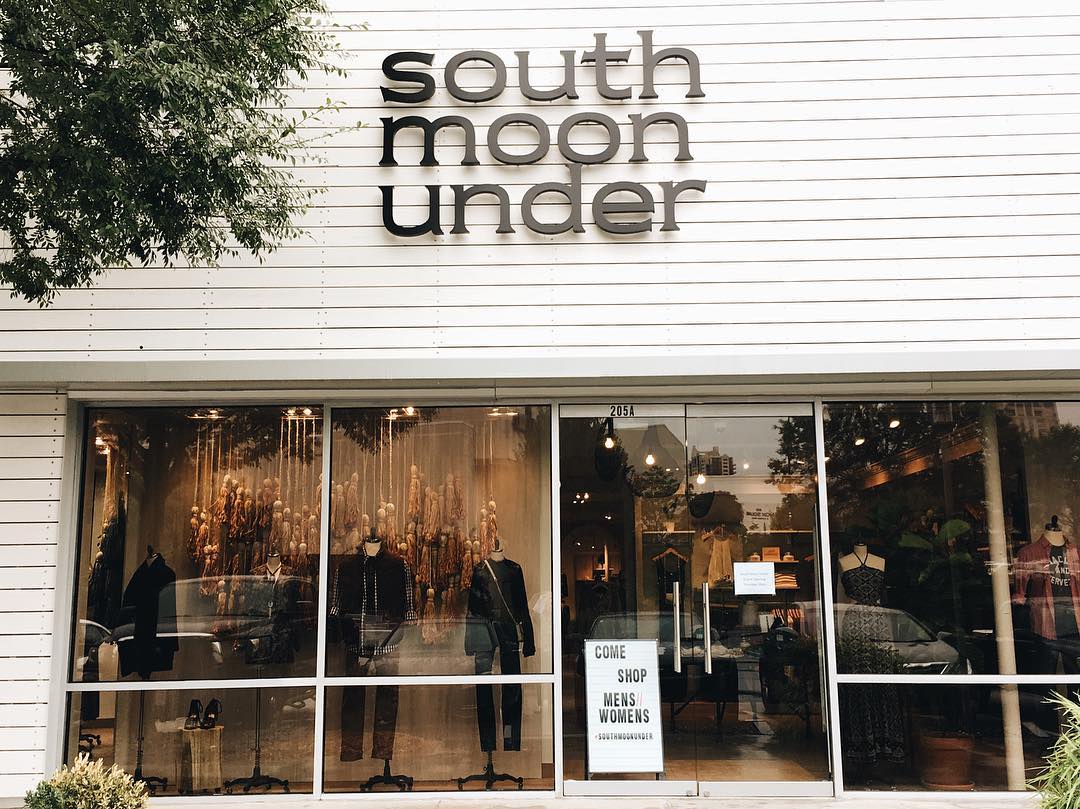 Brands carried at South Moon Under include Free People, Tracy Reese, Jeffrey Campbell, Anna Beck, Blank NYC, Kendra Scott, L*Space, Maaji , a wide selection of premium denim brands and more.