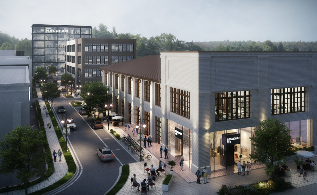 Halcyon includes 480,000 square feet of office and retail space, including a Market Hall and movie theatre, two hotels and 690 residential units, once completed.