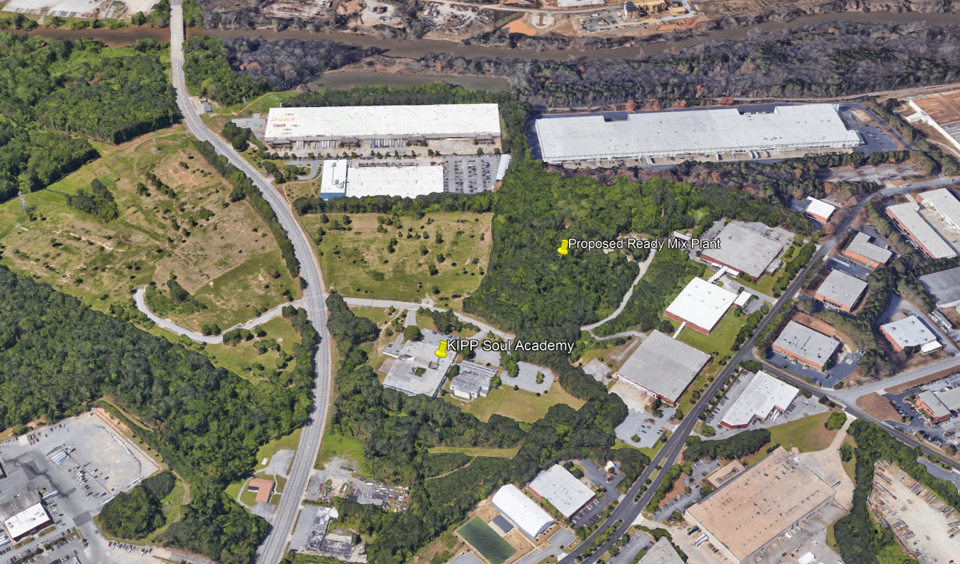The plant would be located on a wooded, greenfield lot just northeast of Highway 278 and west of Atlanta Industrial Parkway. The concrete plant would be less than a quarter mile from KIPP Soul Academy on Maynard Road, and would share the same access with the public charter middle school. Despite these potential impacts, City Council voted almost unanimously to approve the project’s Special Use Permit in 2018.