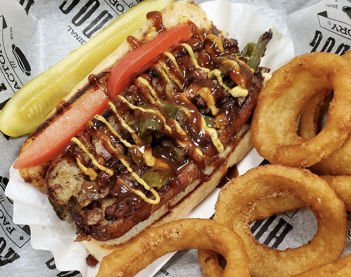 The Original Hot Dog Factory is known for its 100 percent all beef dogs with all the fixings as well as turkey, chicken, veggie and gluten free options.