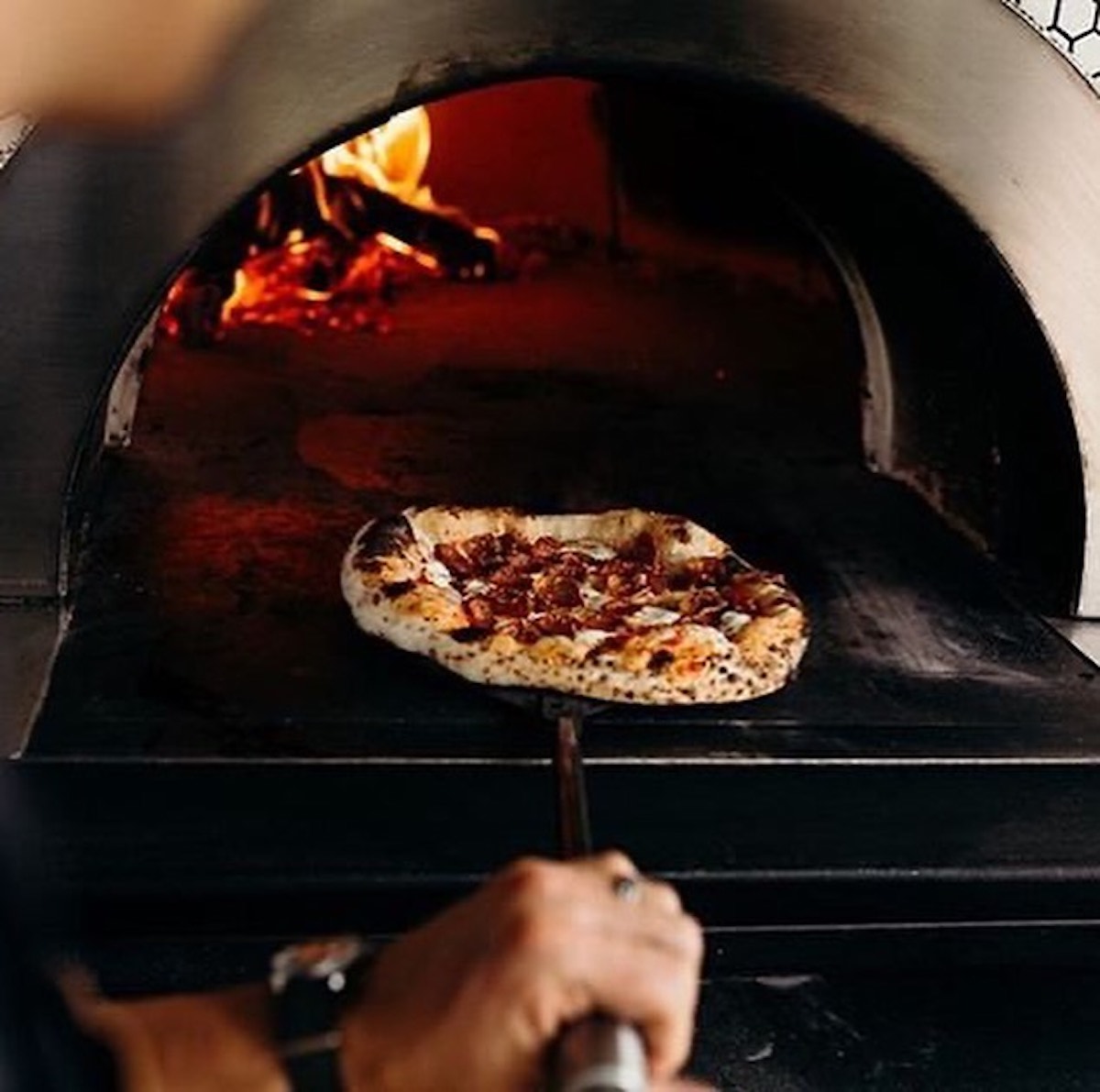 CI reports that Riggle recommends new customers try the James and the Giant Peach pizza which features “a fig base with fresh chunked mozzarella topped with smoked applewood bacon, thin Texas peaches, basil and smoked sea salt.”