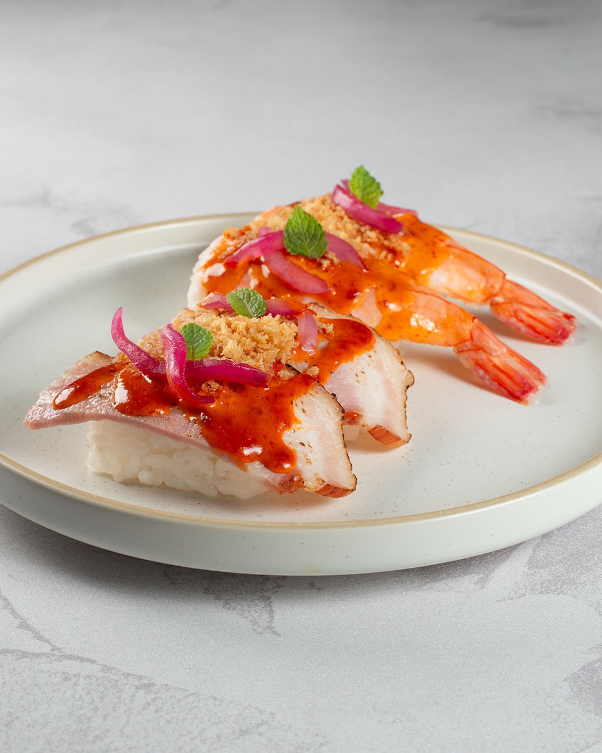Featuring classic nigiri and sashimi, plus hand rolls in seaweed or rice paper, gunkan, and a selection of soup and noodles, Kura Sushi is a great spot for legit sushi. Nigiri choices include not just salmon and tuna but also Hokkaido Scallop, American Wagyu, Conch, and Eel. Noodle dishes included Udon choices like Beef Udon and Shrimp Tempura Udon, and ramens like Tantanmen and Shoyu Ramen.