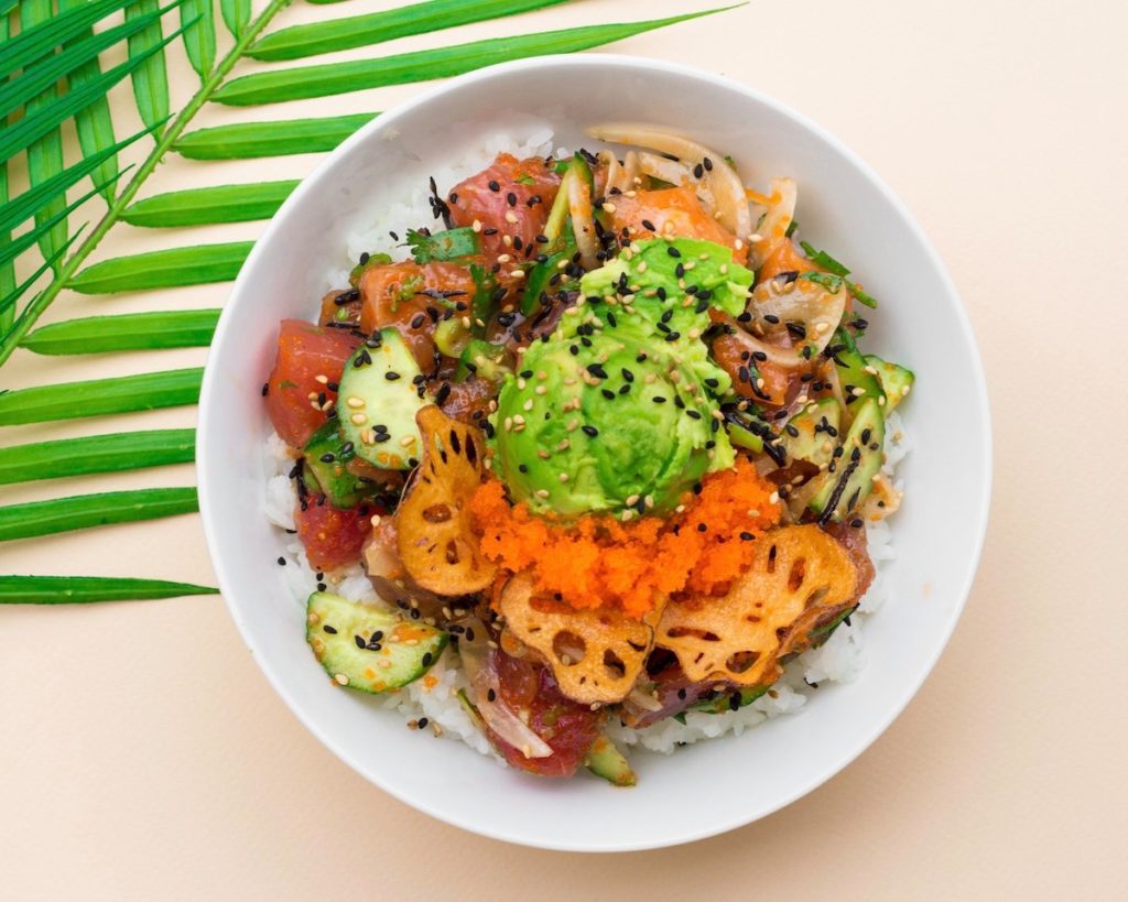 The company describes its offering as based on “fresh, authentic Hawaiian flavors. Pokeworks guests can craft their own burrito, bowl or salad filled with Ahi Tuna, Salmon, Shrimp, Chicken Breast, Organic Tofu and other gluten-free and keto friendly choices.”