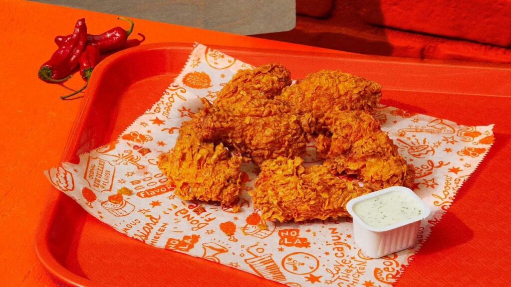 Popeye’s, like most other chicken-centered fast-casual restaurants, features a menu of fried chicken combos, boneless chicken wings and tenders, chicken sandwiches, and a range of appetizers such as cajun fries, coleslaw, red beans and rice, and homestyle mac & cheese.
