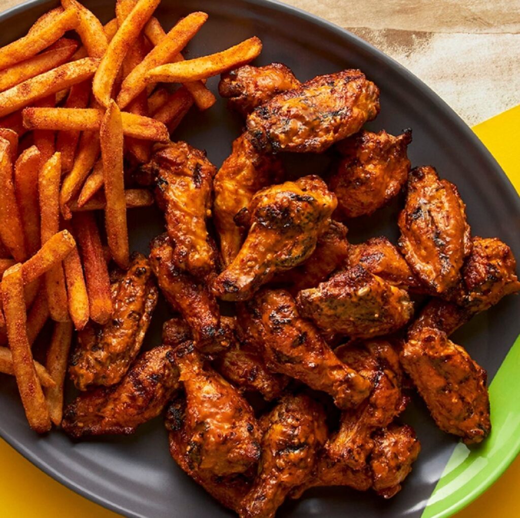 “Nando’s menu makes use of piri piri (which is also spelled out as “peri peri” and also known as African Bird’s Eye chiles) in a marinade for its chicken. There are whole chickens, wings, thighs, legs, livers, and boneless breasts. And then the meats can be used in salads, wraps, bowls, and sandwiches. Sides include honey sweet potatoes, mac and cheese, chips (aka fries), mashed potatoes, hummus, and halloumi cheese sticks.”
