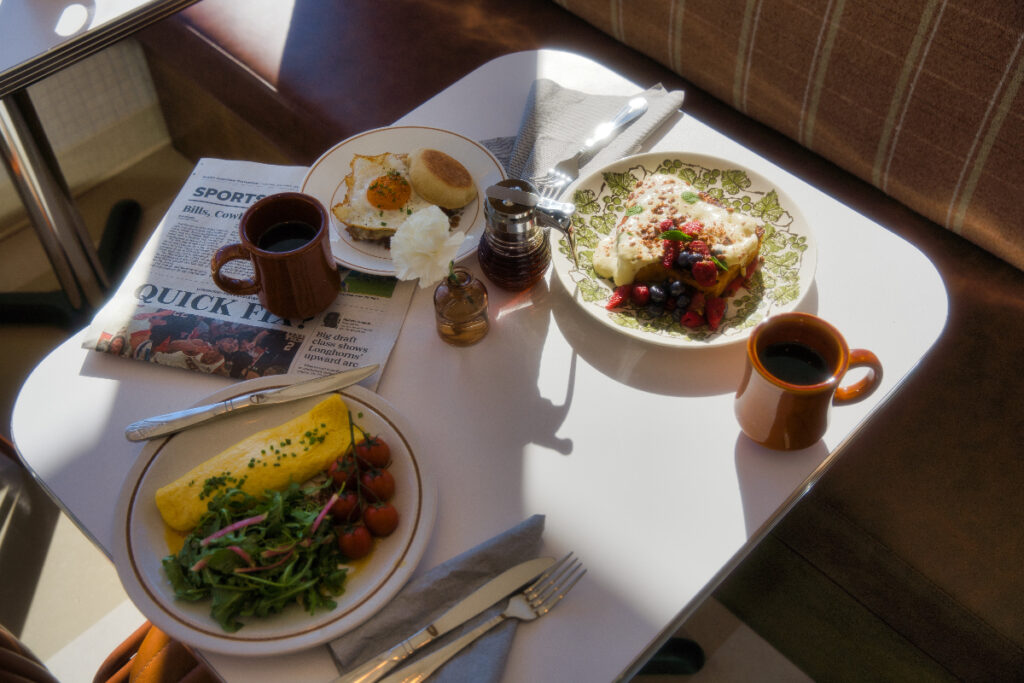 Inspired by the time before cell phones, Toasty Badger has 70s-themed decor, complete with a front window pie display inviting passers-by to come inside and unfolded newspapers waiting for the next customer. A go-to neighborhood spot where quality, consistency, and comfort blend seamlessly, the diner creates a timeless space that feels like a cherished old friend, complemented by a diverse music playlist spanning various genres and decades.