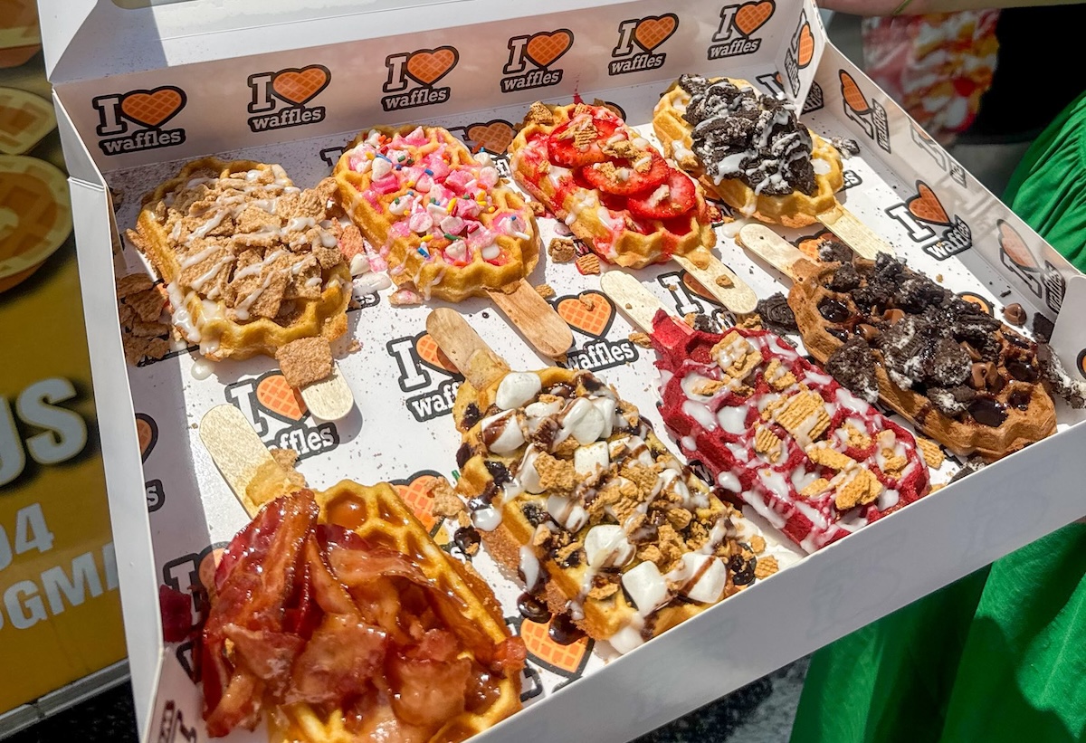 The shop serves waffles on a stick with inventive toppings like bacon, sprinkles and s’mores.